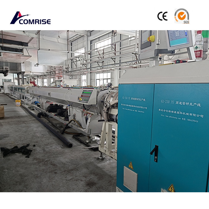 Menurut keperluan khusus pelanggan, Comrise Machinery menghasilkan mesin paip HDPE 110mm dengan Siemens PLC dan skrin sentuh untuk mengawal mesin lengkap. Terdapat juga sistem kawalan auto berat meter. Peranti ini akan menjamin paip PE dengan ketebalan dinding yang tepat seperti yang diperlukan. Extruder adalah SJ65/33 dengan motor 55kW AC.