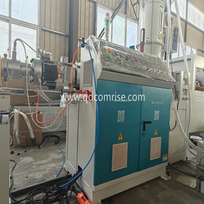 Extruder mencairkan polimer dan memaksanya melalui kepala mati untuk membentuk paip yang lancar.