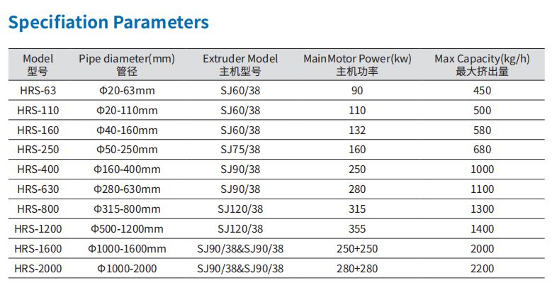 Barisan pengeluaran paip PE/PP/PPR/HDPE/LDPE boleh digunakan untuk menghasilkan paip air panas dan sejuk PPR, paip PE, dan paip teras silikon. Barisan pengeluaran ini boleh digunakan untuk menghasilkan paip warna tunggal dari extruder tunggal, atau menghasilkan paip warna pelbagai lapisan dari pelbagai extruders melalui kepala penyemperitan CO.