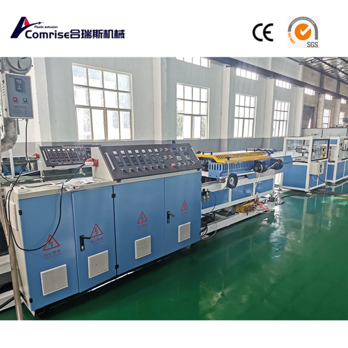 Set lengkap peralatan terdiri daripada SJ Seri Skru Extruder → Extrusion Die → Spiral Forming Die → Vacuum Spray Water Tank → Mesin TRACTION → Mesin gergaji → Platform membalikkan.
